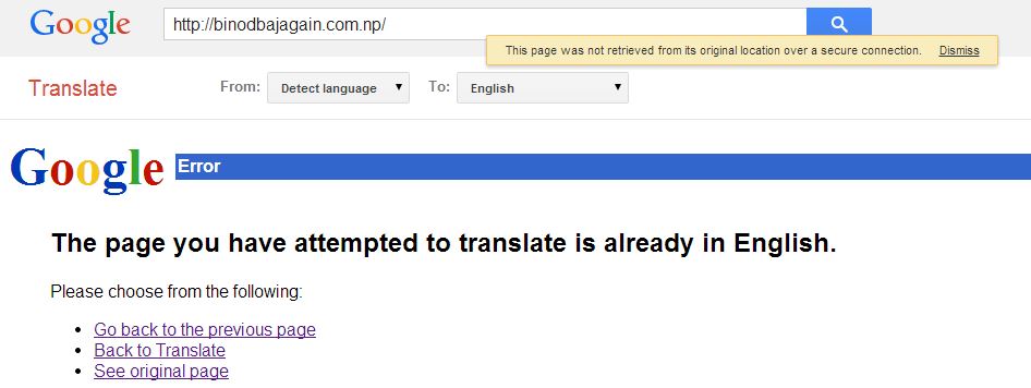 You may encounter "The page you have attempted to translate is already in English." error in next page.